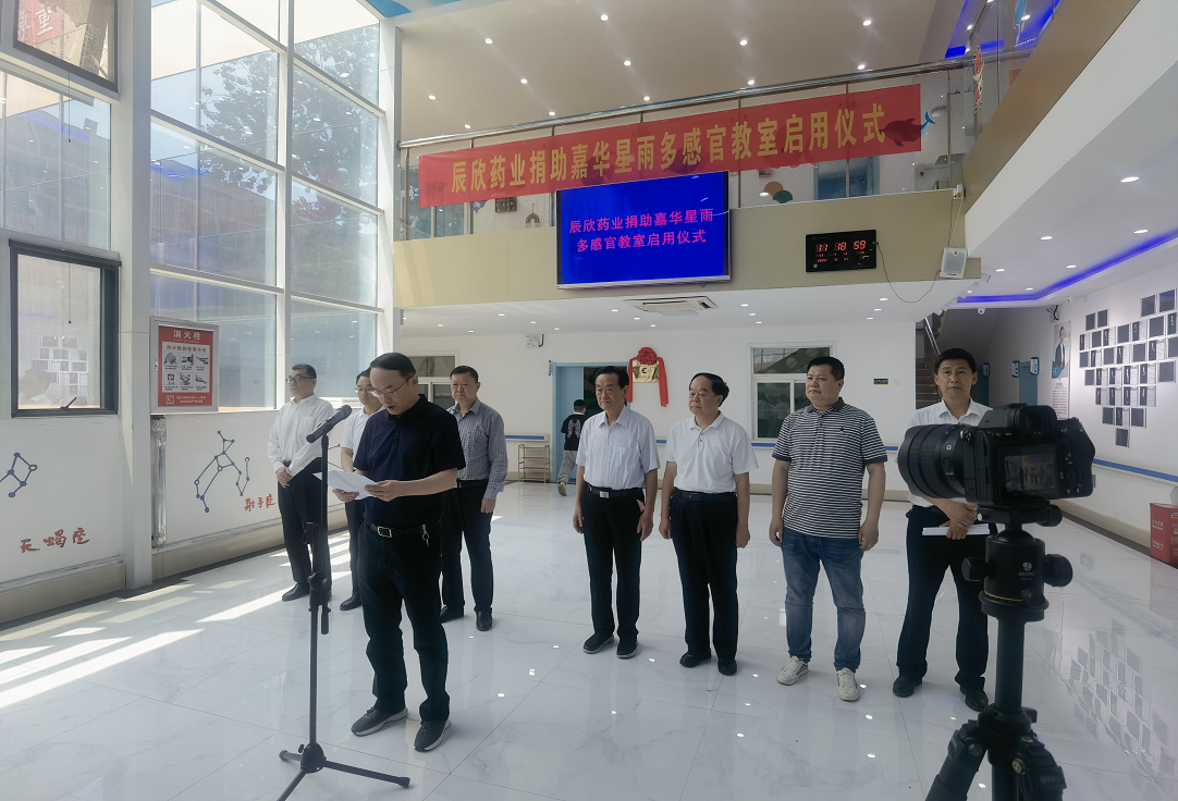 5月31日,辰欣藥業董事長兼總經理杜振新先生受邀參加嘉華星雨多感官教室啟用儀式,并為辰欣藥業捐助的“嘉華星雨多感官教室”揭牌。
