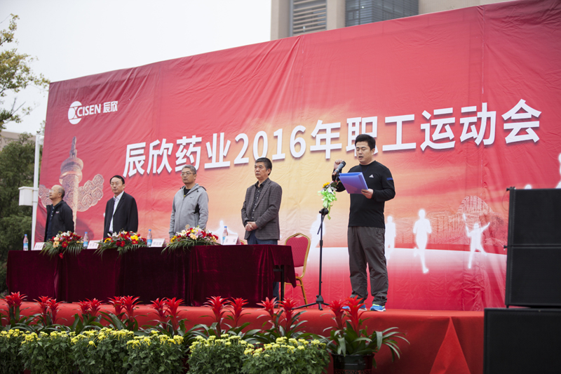 開幕由韓延振副總經理主持,杜振新董事長發表了熱情洋溢的致辭。杜總首先代表辰欣藥業黨委向本次運動會的召開表示熱烈的祝賀!向籌備此次運動會付出辛勤勞動的后勤保障人員、向積極參與本次運動會的全體裁判員、運動員致以衷心的感謝!他指出,長期以來,辰欣藥業堅持在經濟發展的同時,始終不忘堅持以人為本的理念,通過各種形式開展豐富多彩的文體活動,活躍了公司的文化氛圍,豐富了廣大職工的業余文化生活。舉辦此次運動會是公司長期堅持以人為本理念的延續和創新,意在進一步豐富辰欣職工的文體生活,增強員工團結拼搏、爭創一流的精神,鍛煉職工強健的體魄,打造一支強健而高素質的職工隊伍,促使辰欣藥業企業文化建設事業再上新的水平!杜總最后希望全體運動員、裁判員和工作人員堅持友誼第一、比賽第二、公平競爭的原則,遵守賽場紀律、遵守比賽規則,頑強拼搏、勇于爭先、賽出風格、賽出水平,以優異的成績展現出辰欣職工良好的精神面貌,努力把這次運動會辦成團結鼓勁、凝聚人心、促進發展的盛會,不斷將公司“推陳出新、誠實守信”的理念發揚光大。隨后,運動員代表、裁判員代表分別進行了宣誓。